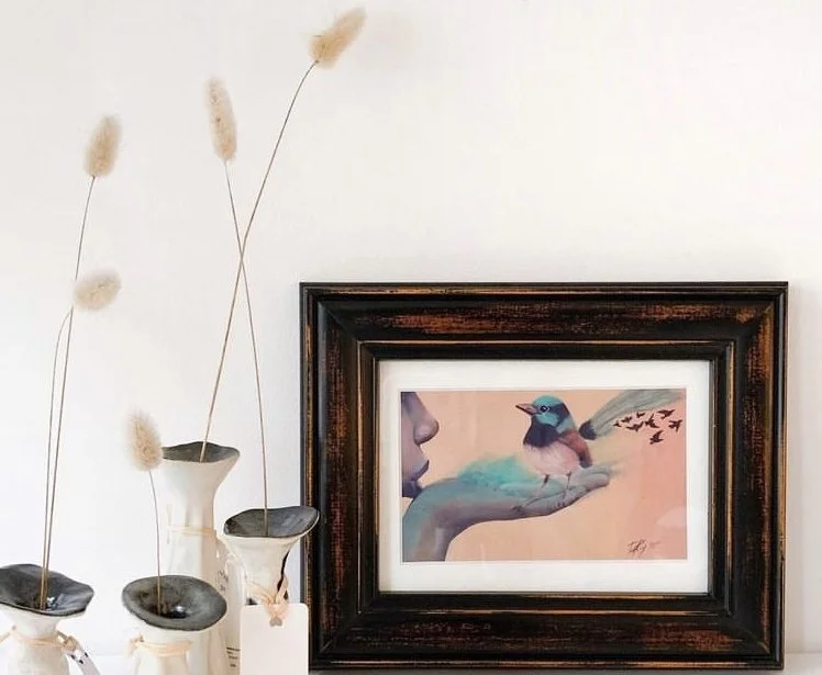 All framed prints come in up-cycled / restored vintage / second-hand frames, or in frames created from offcuts that would otherwise go to landfill.